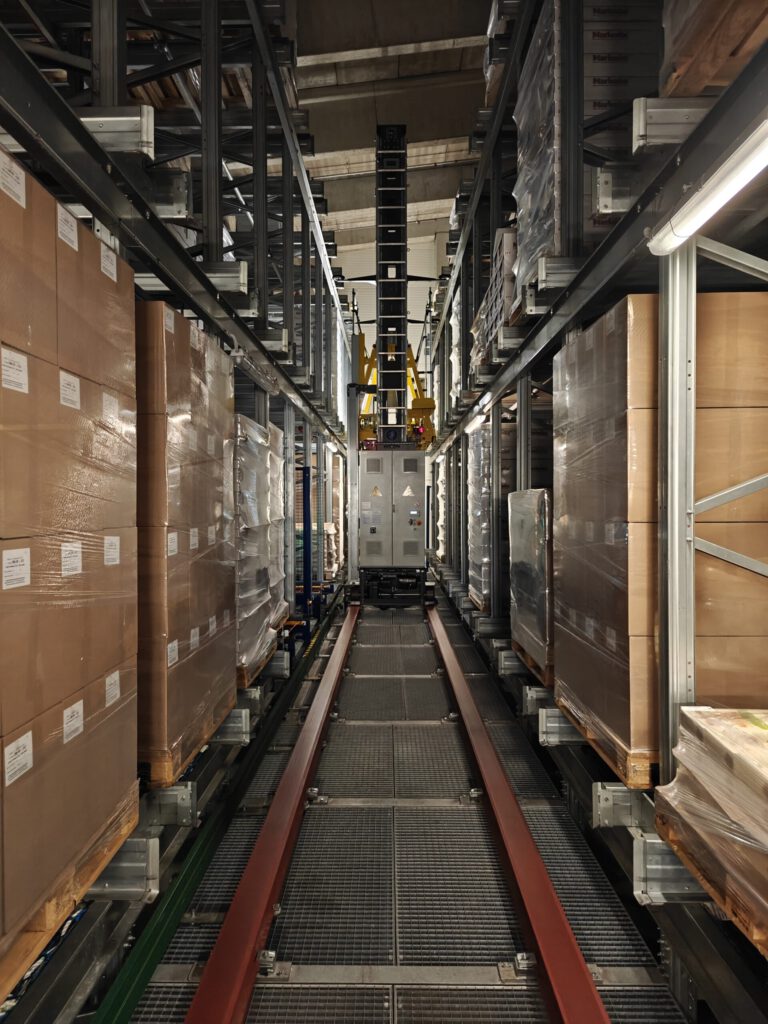 Der Palettenstapler stapelt Paletten automatisch und effizient.